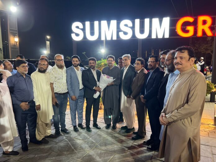 Karachi:The grand inauguration ceremony of SumSum Group’s “Grand II Project” was held, graced by prominent and esteemed personalities of the city. Distinguished attendees included Mr. Zaid Khan Tessori, son of the Governor of Sindh; former Federal Minister Miftah Ismail; Mufti Abdul Raheem of Jamia Tur Rasheed Karachi; Chairman of ABAD Hassan Bakhshi; and President of DEFCLAREA, Johar Iqbal, among other notable figures from social and business circles.