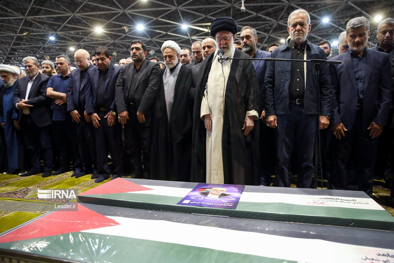 Iran’s Supreme Leader Ayatollah Ali Khamenei led the prayers at Tehran University, where Haniyeh’s coffin was carried by mourners waving Palestinian flags.