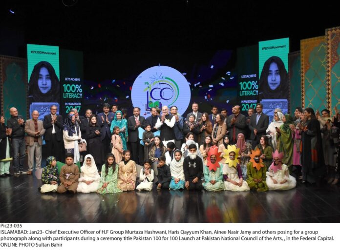 Islamabad: The Hashoo Foundation, in collaboration with Sunbeams, proudly launched the transformative Pakistan 100 for 100 Movement (PK100) today. The movement aims to promote access to universal education for every citizen in Pakistan by its centennial in 2047.