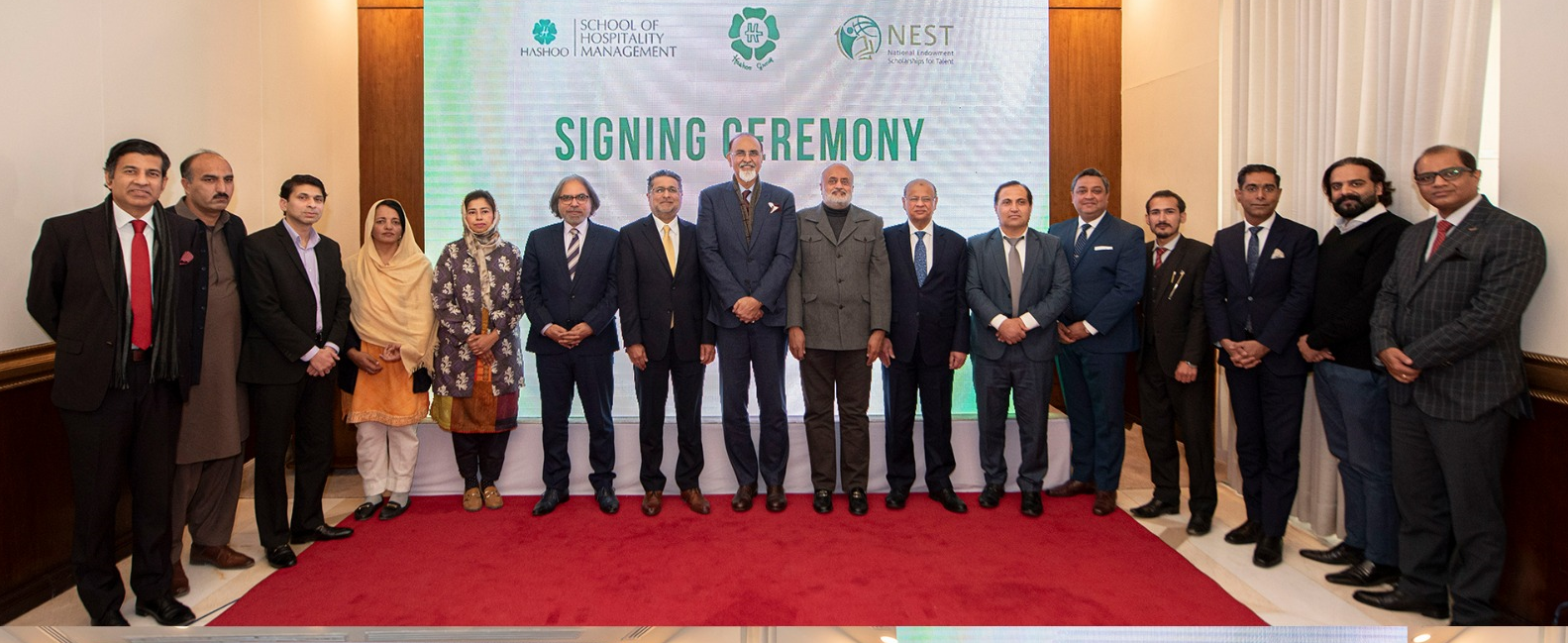 Islamabad: Continuing its mission to promote accessible education and employment opportunities for the economic upliftment of Pakistan, the country’s leading hospitality and tourism conglomerate, Hashoo Group, has collaborated with the National Endowment Scholarships for Talent (NEST) of the Ministry of Federal Education & Professional Training M/o FE&PT, Government of Pakistan, Islamabad. This collaboration will introduce dedicated Hospitality Scholarships in Pakistan to promote the Hospitality & Tourism Sector, marking the first time in the country.