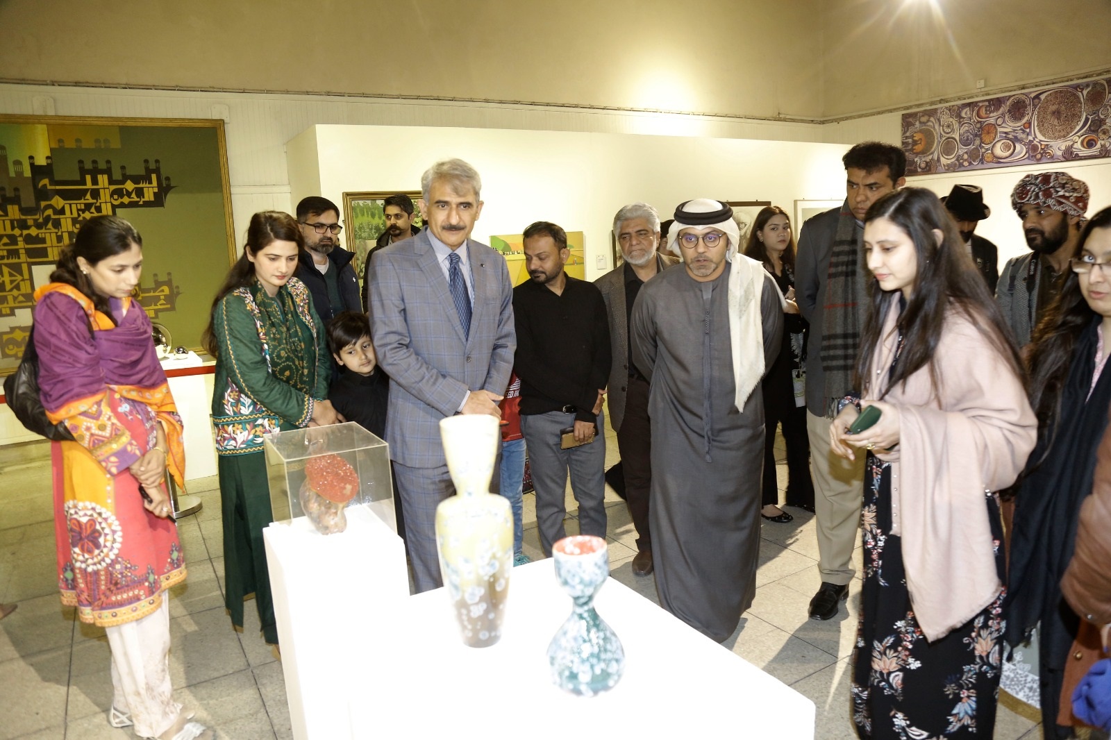 The exhibition was inaugurated by the Ambassador of United Arab Emirates H.E. Hamad Obaid Ibrahim Salem Al-Zaabi.The ambassador took keen interest in the outstanding work of the artists and hailed the role of Lahore museum for promoting the sculpturing art.He said that the artists highlighted the different national and international issues throurh their work .The ambassador also shown interest to display a pictorial exhibition of art and culture of UAE at Lahore museum soon .At the emd of openig ceremony the deputy director Lahore museum presented a souvenir to the ambassador.