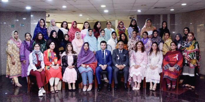 At a session, Assoc. Prof. Dr. Saira Mehmood Breast Surgeon MIH said that Breast cancer is the most commonly diagnosed cancer and the leading cause of cancer deaths in women around the world. In 2018, 2.1 million new cases were reported with 627000 deaths. Given that Pakistan has the highest incidence rate of breast cancer among Asian countries, one in every nine women has a lifetime risk of being diagnosed with breast cancer, our women have very low rates of early detection and diagnose breast cancer at advance stages with fewer chances of survival said Dr. Saira. Hence, it is important to educate women about early detection, risk factors, self-examination & prevention of breast cancer she added, emphasizing women to notice any change in their breast appearance or inconsistency, & report it to a healthcare provider right away.
