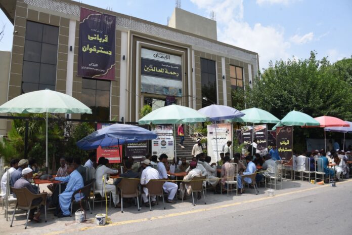 Islamabad: In extremely hard times of poverty, unemployment, low wages and ever escalating rate of inflation, poor people are suffering the most. To offer solace and relief to such needy ones, Masjid Rehmat-ul-lil-Alameen located at F/8- 4 Main Nazim-ud-Din Road served the meals to the thousands deserving and those who cannot afford to buy food ––with dignity and upholding their self-respect on the occasion of Eid-ul-Adha under the slogan that, “No one should go hungry”.