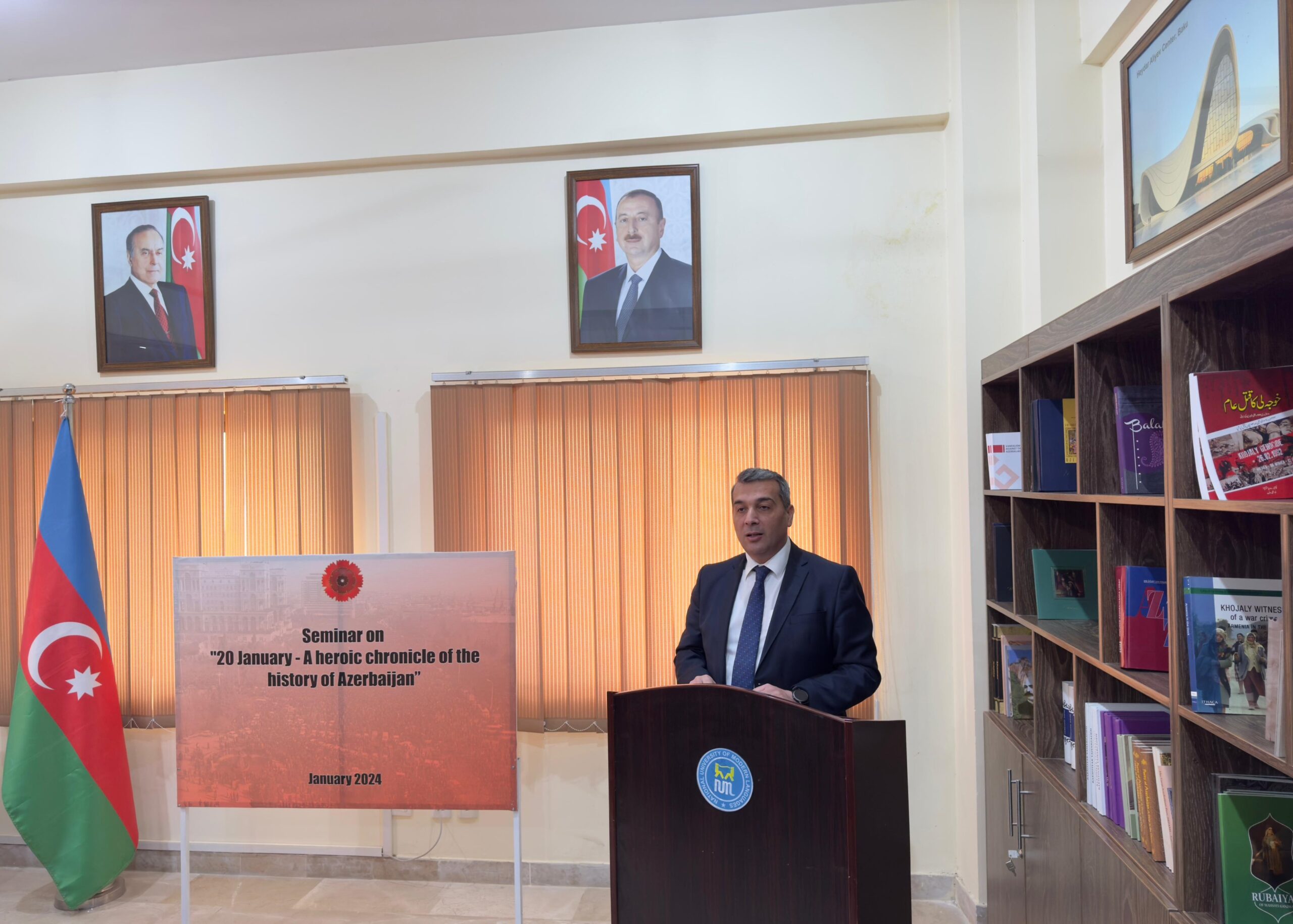 Islamabad: The Embassy of Azerbaijan in Pakistan organized a seminar titled “January 20 – Heroic Chronicle of the History of Azerbaijan” dedicated to the commemoration day of January 20 martyrs. The event brought together the teaching staff of Pakistan National University of Modern Languages (NUML), representatives of local think tanks, and embassy personnel.