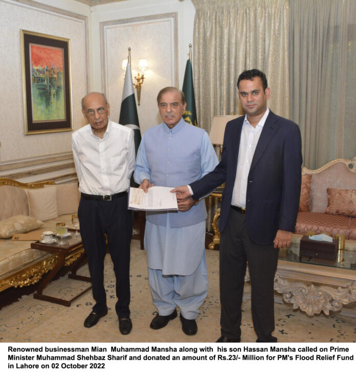 During the meeting, Mian Muhammad Mansha donated an amount of Rs 23 million for Prime Minister’s Flood Relief Fund.