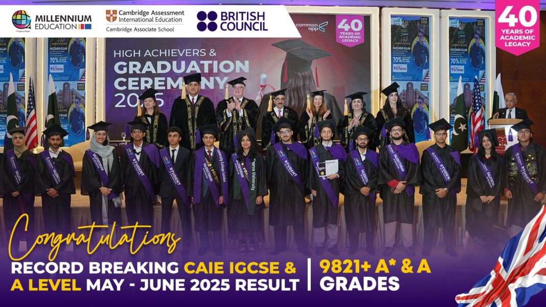 Islamabad August 21, 2025: Continuing a proud legacy of academic distinction, The Millennium Education Group and Future World Schools & Colleges have achieved historic success in the Cambridge Assessment International Education (CAIE) May–June 2025 Examinations. With an unprecedented 8,121+ A*s and As in IGCSEs and 1,700+ A*s and As in A Levels, this milestone stands as a testament to The Millennium Education Group’s 40-year journey of excellence, innovation, and holistic development says a press release.