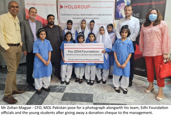 ISLAMABAD: MOL Pakistan Oil and Gas Company B.V. makes a financial donation to the Edhi Foundation in support of Pakistan’s most well-known non-profit social welfare organization.