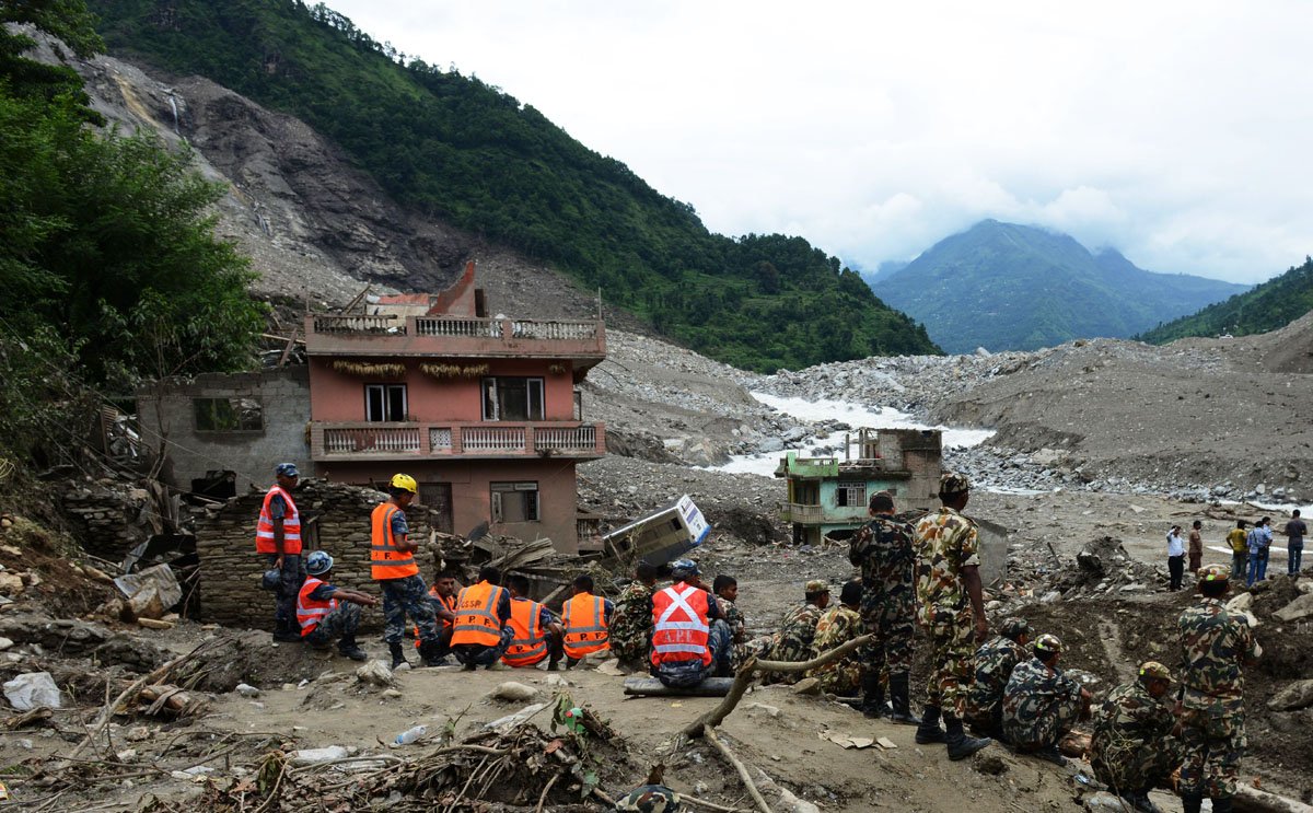 Flash floods and landslides occur frequently in the mountainous terrain of Nepal, especially during annual monsoon rains between June and September.