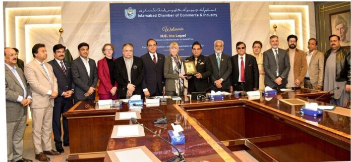 Islamabad: The Ambassador of the Federal Republic of Germany to Pakistan, H.E. Ina Lepel accompanied by Ms. Janine Rohwer, Counsellor Political and Economic Affairs and Climate Change visited the Islamabad Chamber of Commerce and Industry (ICCI) and held an interactive session with the business community of Islamabad, reaffirming Germany’s strong commitment to further strengthening bilateral economic relations with Pakistan.
