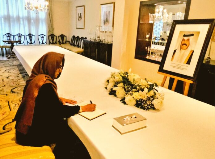 Brussels: of Pakistan to European Union, Belgium and Luxembourg Amna Baloch visited the Embassy of Kuwait in Brussels to express heartfelt condolences to the Ambassador of Kuwait, on the sad and untimely demise of His Royal Highness Sheikh Nawaf Al-Ahmad Al Jaber Al-Sabah, the late Emir of Kuwait.