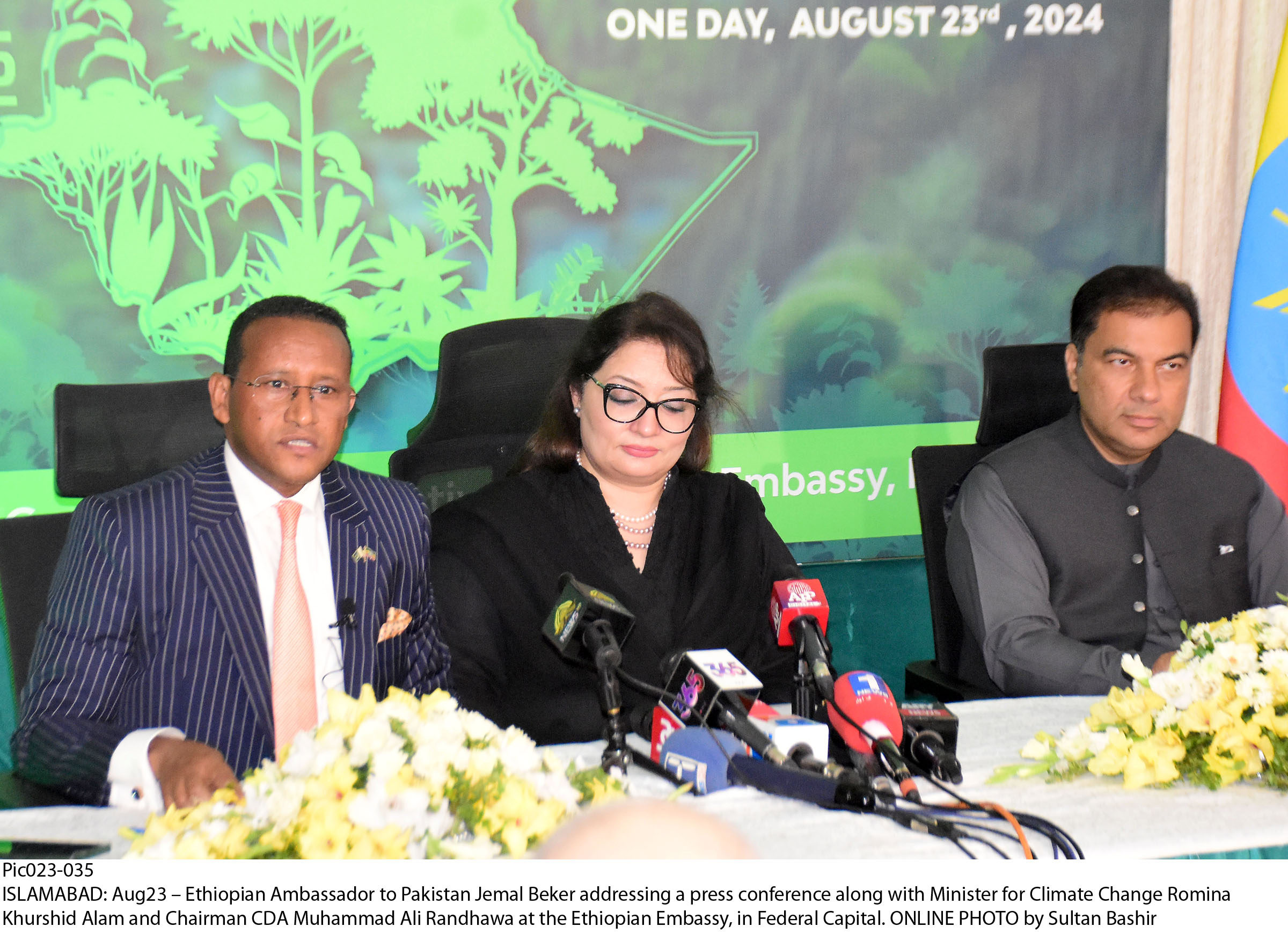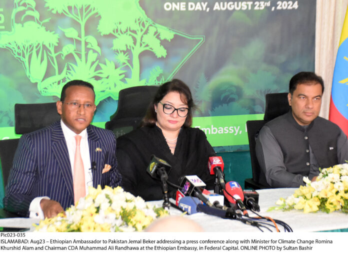 The announcement to this effect was made during a press briefing jointly addressed by H.E.Jemal Beker Abdula, Special Envoy and Ambassador of Ethiopia to Pakistan, Romina Khursheed Alam, Coordinator to the Prime Minister on Climate Change, and Muhammad Ali Randhawa, Chairman of the Capital Development Authority (CDA) and Commissioner Islamabad.