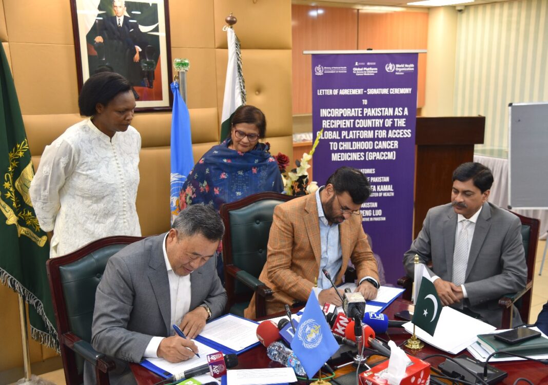 Islamabad, Pakistan – The World Health Organization (WHO) and the Ministry of Health formalized today Pakistan’s participation in the Global Platform for Access to Childhood Cancer Medicines (Global Platform) to provide quality-assured medicines – free of cost – to children affected by cancer in the country, where over 8000 new cases are diagnosed annually.