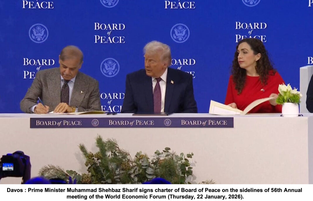 DAVOS:Pakistan on Thursday signed the charter of the Board of Peace as part of its ongoing efforts to support the implementation of the Gaza Peace Plan.