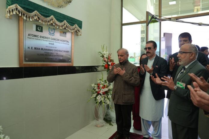Muzaffarabad:Prime Minister Muhammad Shehbaz Sharif, Sunday, while appreciating the contributions of Pakistan Atomic Energy Commission’s (PAEC) in the health sector, termed provision of treatment to the cancer patients with the latest facilities as the ‘biggest service to humanity.’