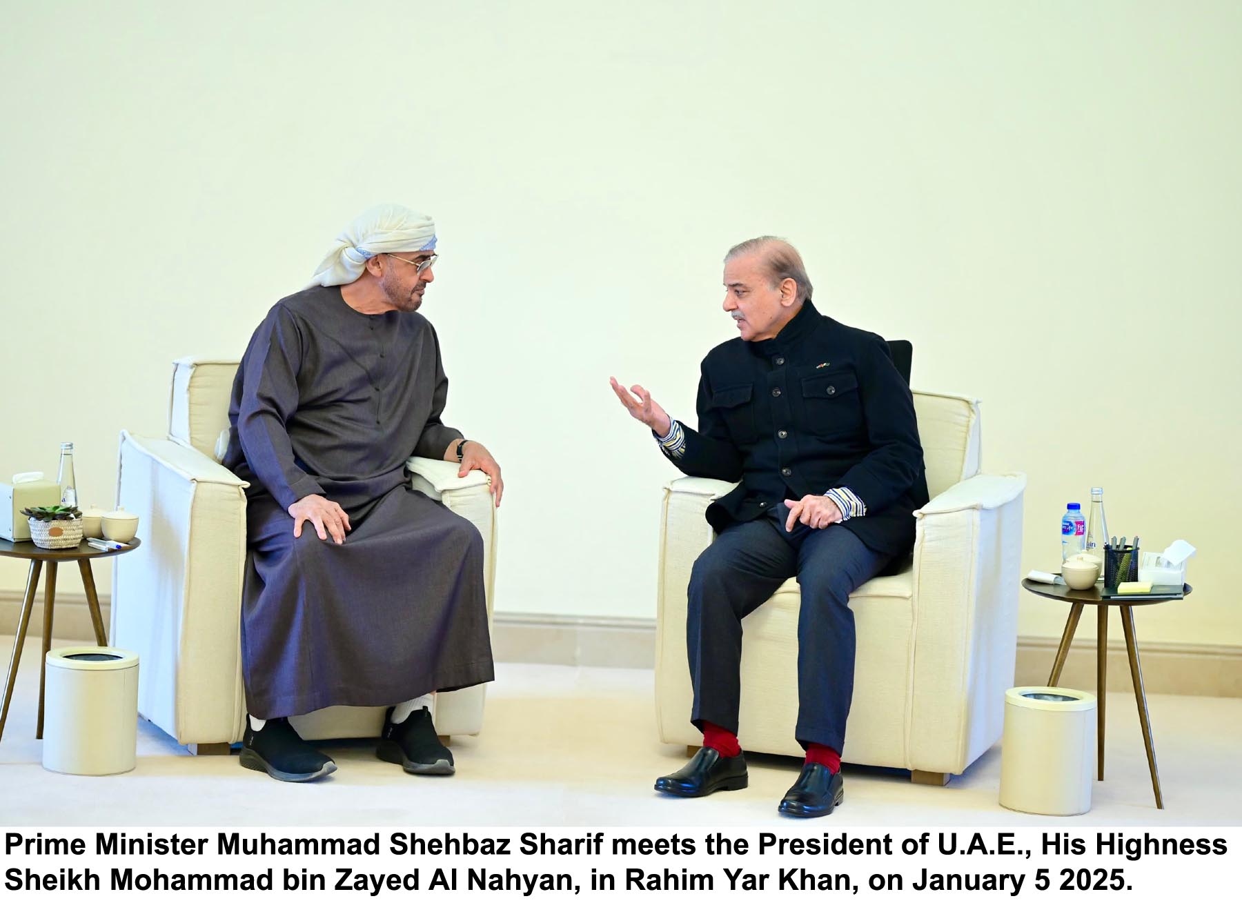 RAHIM YAR KHAN: Prime Minister Shehbaz Sharif Sunday met with His Highness Sheikh Mohammed bin Zayed Al Nahyan, President of the United Arab Emirates here and discussed matters of mutual and bilateral interest.
