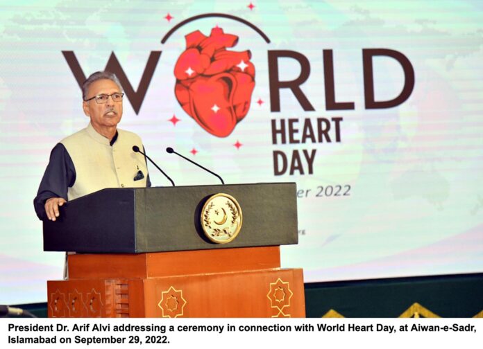 The President made these remarks while addressing a symposium organized by Maroof International Hospital to commemorate “World Heart Day – 2022”, at Aiwan-e-Sadr, on Thursday. This year World Heart Day is being commemorated with the theme of “Use Heart for Every Heart” aiming to urge people to think differently, make the right decisions, help others and reach as many individuals as possible to help achieve cardiovascular health for every heart.