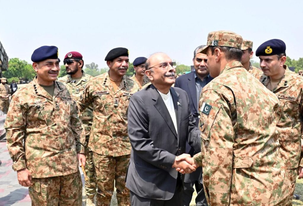 During his interaction with officers and troops, the President commended their exemplary morale, combat readiness, and devotion to duty. He extended heartfelt congratulations on the successful culmination of Operation Bunyan-um-Marsoos, and expressed profound pride in the defenders of the nation, affirming that the people of Pakistan hold their brave soldiers in the highest esteem as the true custodians of national honour and sovereignty.