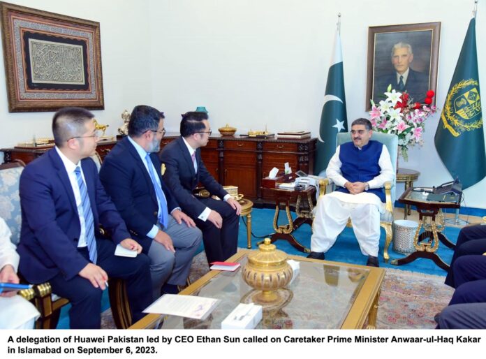 Islamabad:- Mr. Ethan Sun, CEO Huawei Pakistan, called on His Excellency, the Prime Minister of Pakistan, Mr. Anwaar-ul-Haq Kakar, to share ongoing and potential collaborations to develop the ICT ecosystem and digital economy in Pakistan.
