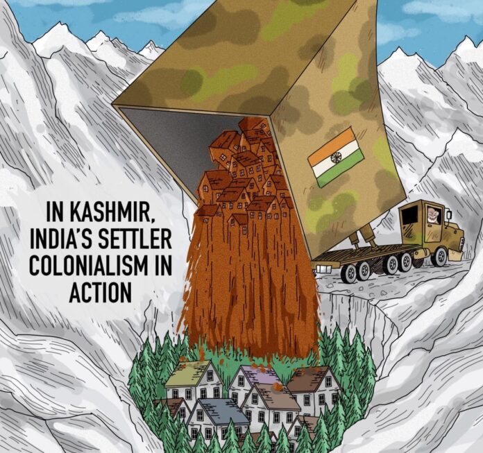 Haris Zargar wrote in ‘Development and Change’ on January 4, 2024, “Under the pretext of combating land encroachment, the state authorities also launched a forceful eviction campaign, and by January 2023, the revenue administration asserted that they had reclaimed about 50,000 acres of State and kacharai (grazing) land throughout the territory (Chakraborty, 2023). In the context of a military occupation, the purpose of surveillance is therefore to dispossess individuals of their land through the encroachment narrative and to label Kashmiri Muslim land ownership illegal through the reconstruction of digital land records.”