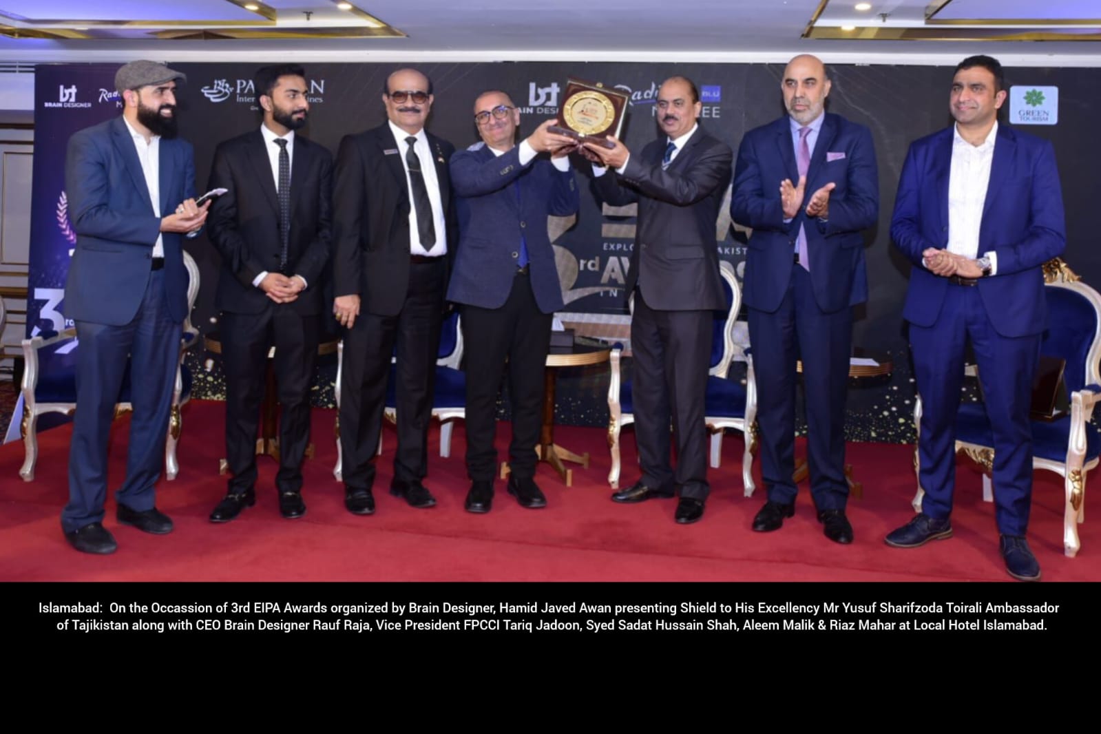 Islamabad: The third annual EIPA Awards 2025, organized by Brain Designer, took place in Islamabad with the aim of promoting Pakistan’s positive image and encouraging foreign investment while fostering tourism in the country. The event brought together key stakeholders from the tourism, investment, and business sectors, including foreign diplomats, overseas Pakistanis’ organizations, and officials from Chambers of Commerce and Industries, as well as prominent real estate figures.