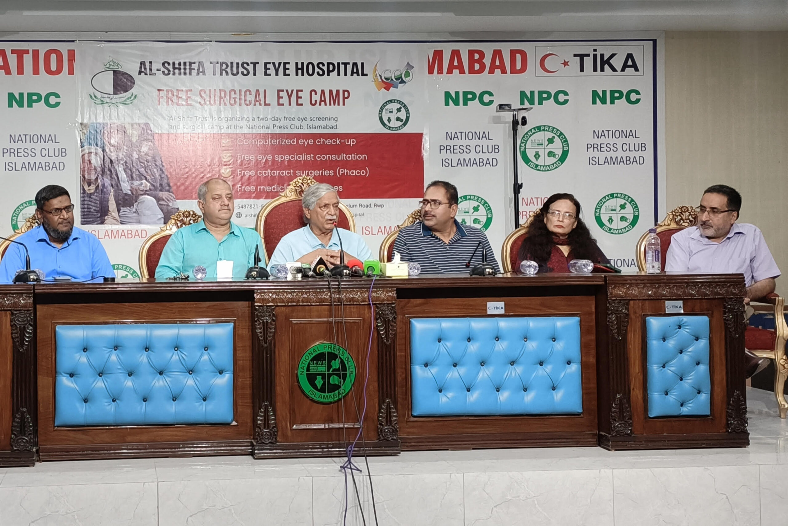 Before the press briefing, officials from the National Press Club informed the President of Al-Shifa Trust that hundreds of journalists had received treatment, and dozens had undergone operations in a state-of-the-art mobile operation clinic, where free glasses and medicines were also provided.