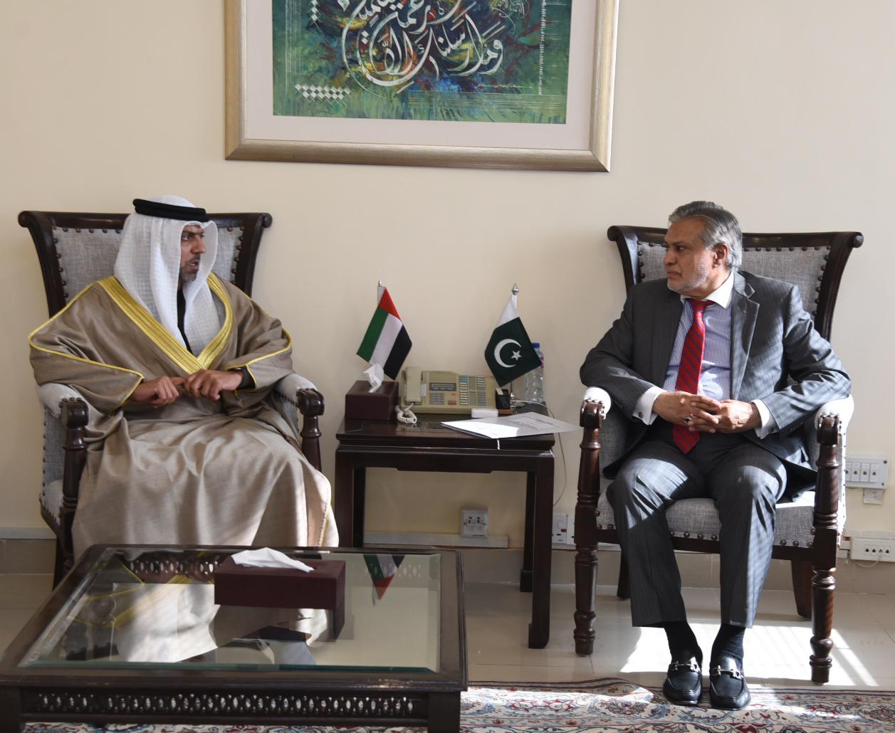 Finance Minister Mr. Ishaq Dar and H.E. Mr. Hamad Obaid Ibrahim Salim Al-Zaabi, Ambassador of the United Arab Emirates exchanged views on enhancing and strengthening the bilateral economic relations between both the brotherly countries.