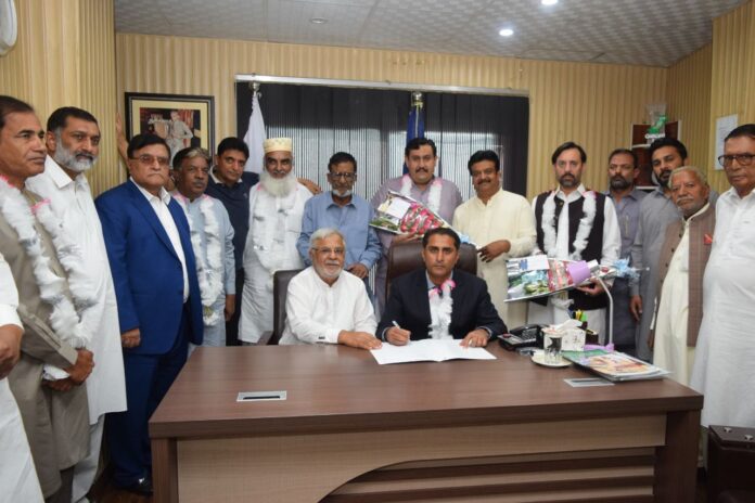 The newly elected President of Chakwal Chamber of Commerce and Industry Waqar Zafar Bakhtawari is taking charge of his office from the outgoing president Sheikh Haroon.