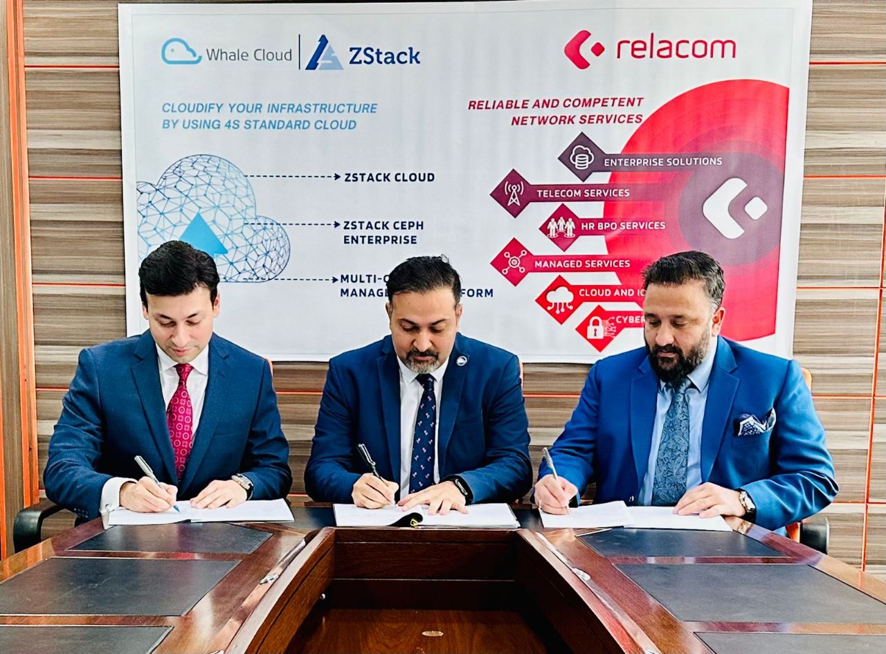 Islamabad: Whale Cloud Technologies (an AliBaba Company) signed a Cloud Solution Distribution Agreement with Relacom in Pakistan. This agreement authorizes Relacom for the distribution of ZStack and Whale Cloud Services throughout Pakistan.