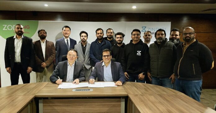 Islamabad : Zong 4G, Pakistan’s leading mobile network operator, and JS Zindigi, a leading digital financial services provider, announced a lucrative partnership to offer Banking-as-a-Service (BaaS) within the My Zong App (MZA). The signing ceremony took place on March 13th, 2024, at Zong 4G headquarters, signed by CFO Zong 4G Mr. Huang Zhidong and CEO JS Zindigi Mr. Numan Azhar.