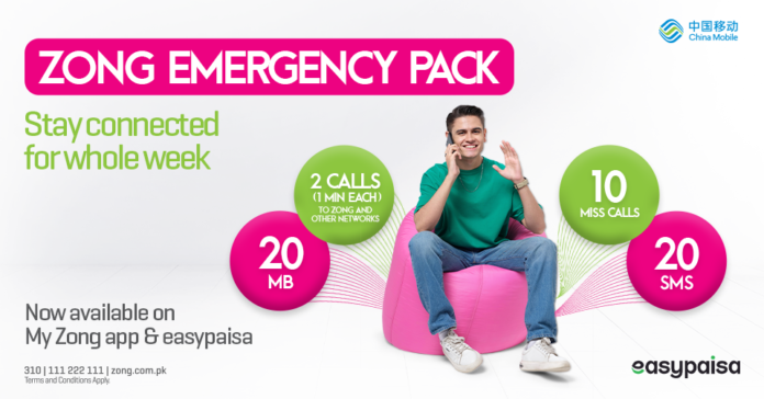 Islamabad:: Zong 4G, Pakistan’s leading telecom operator ensures that users get unlimited connectivity despite having low balance with its newest value-added service, Zong Emergency Pack.